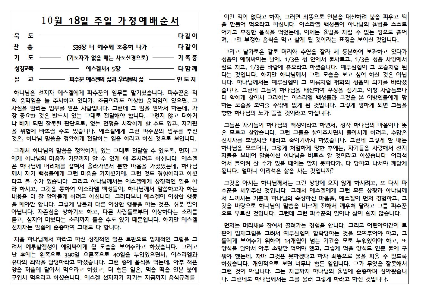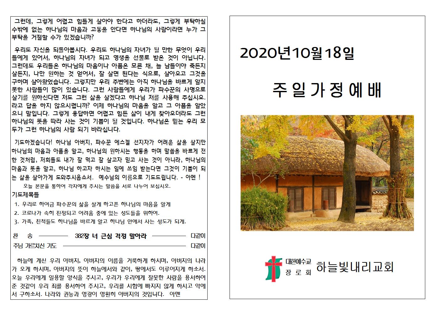 2020.10.18 가정예배자료