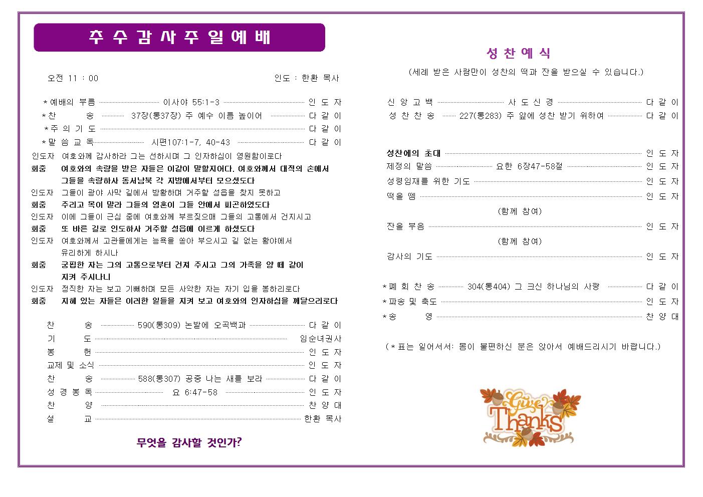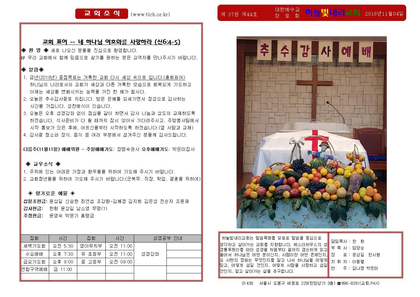 주보 2018.11.04 추수감사절