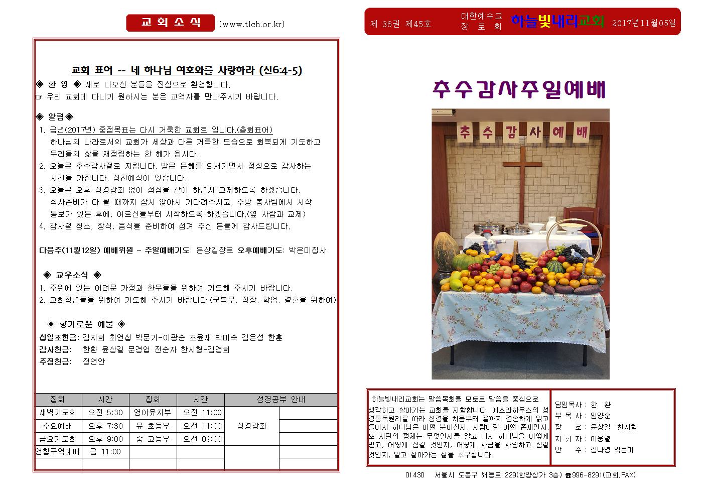 주보 2017.11.05 추수감사절