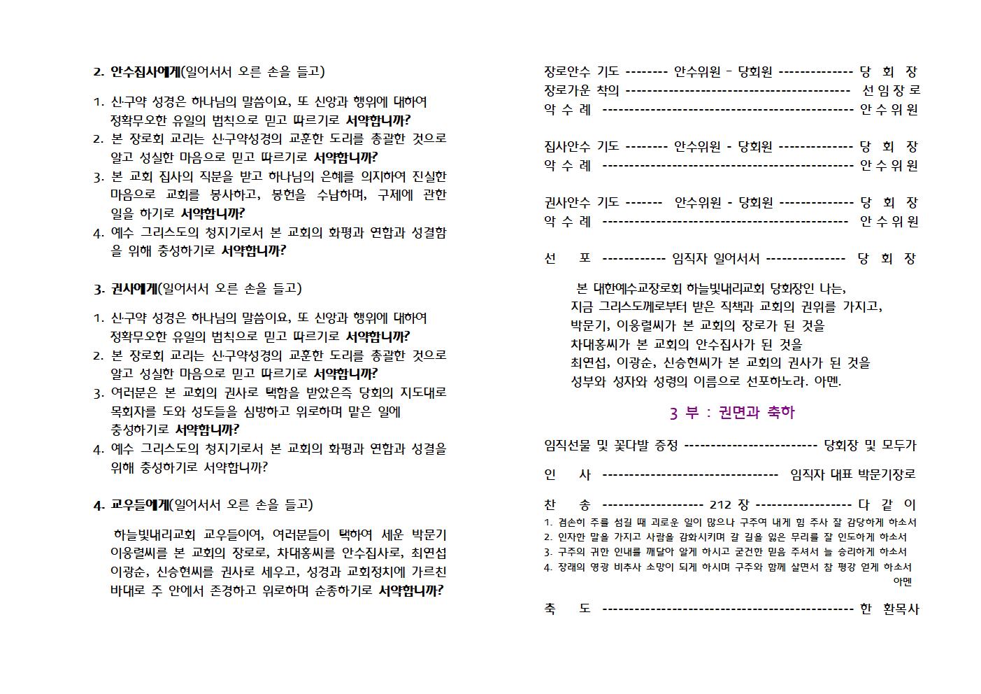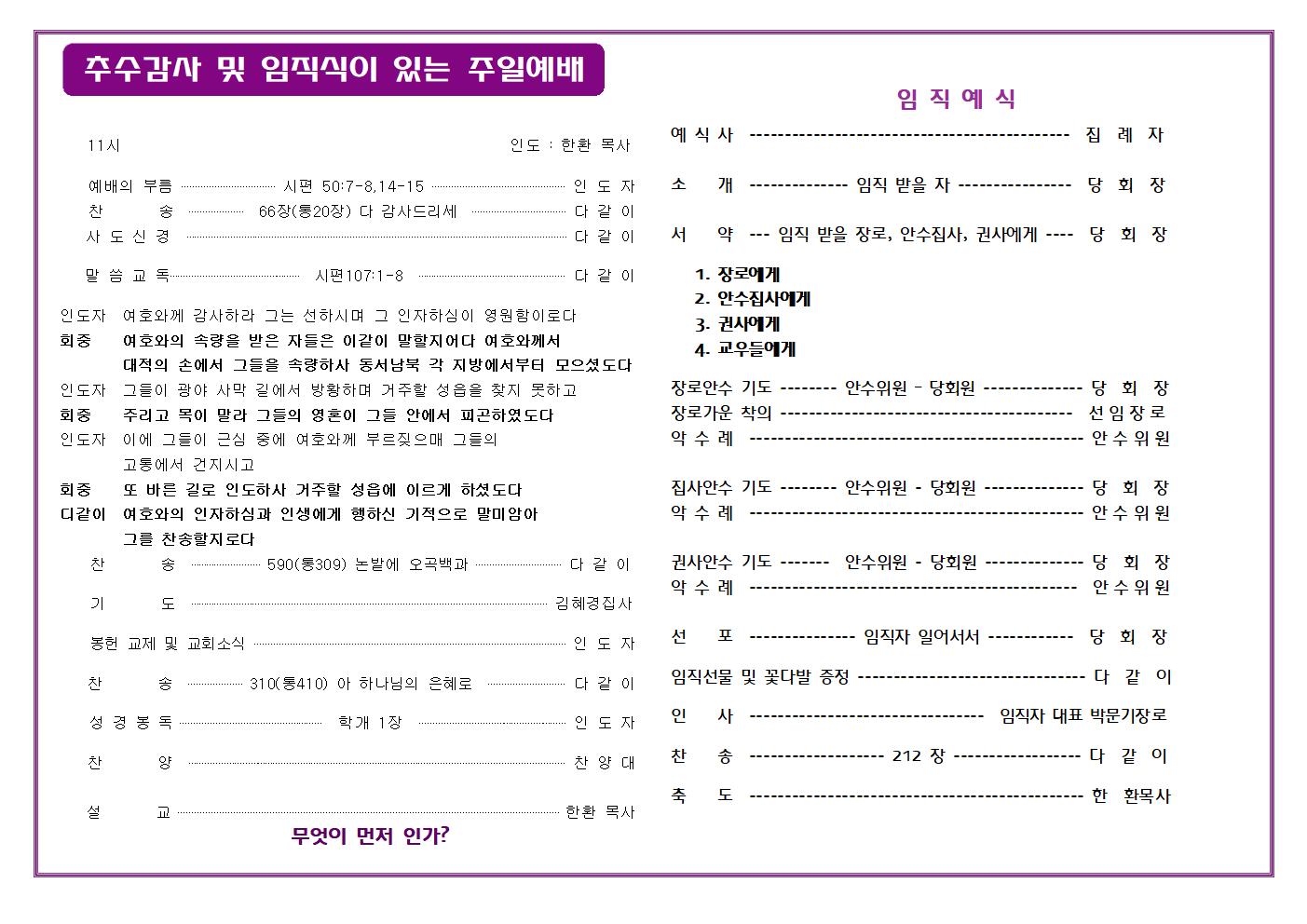 2023.11.05 추수감사주일 주보 및 임직예식순서지