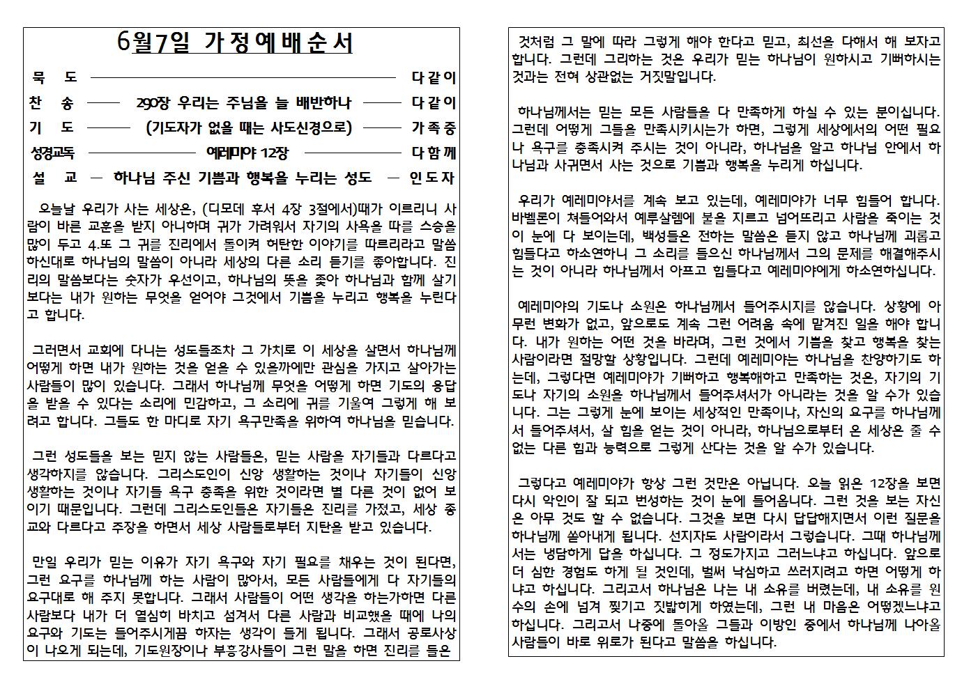 2020.06.07 가정예배자료
