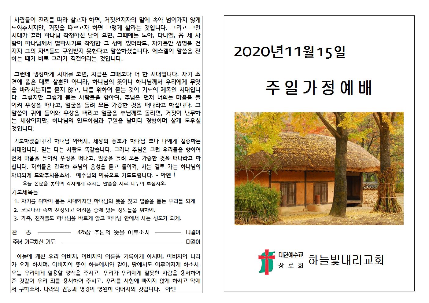 2020.11.15 가정예배자료
